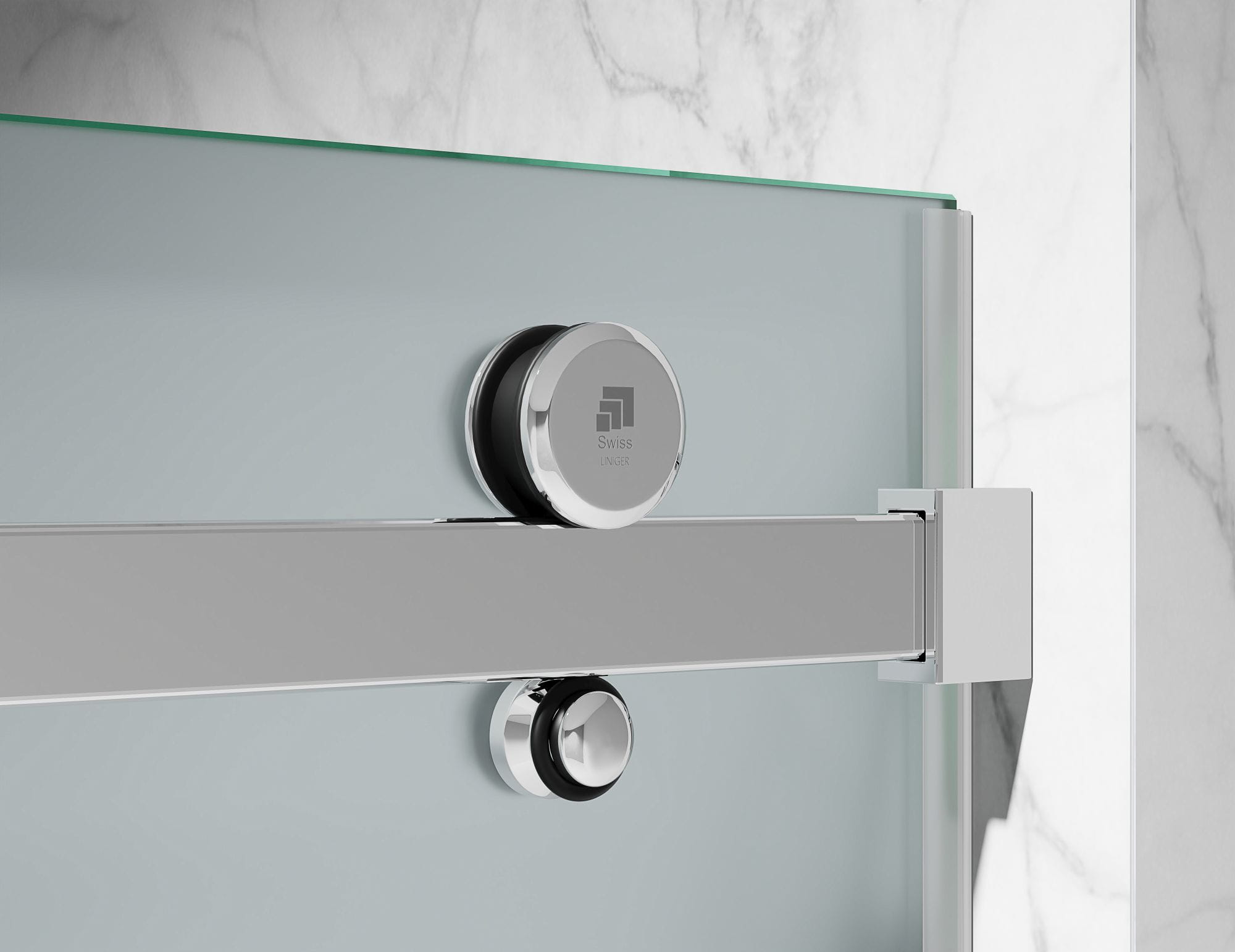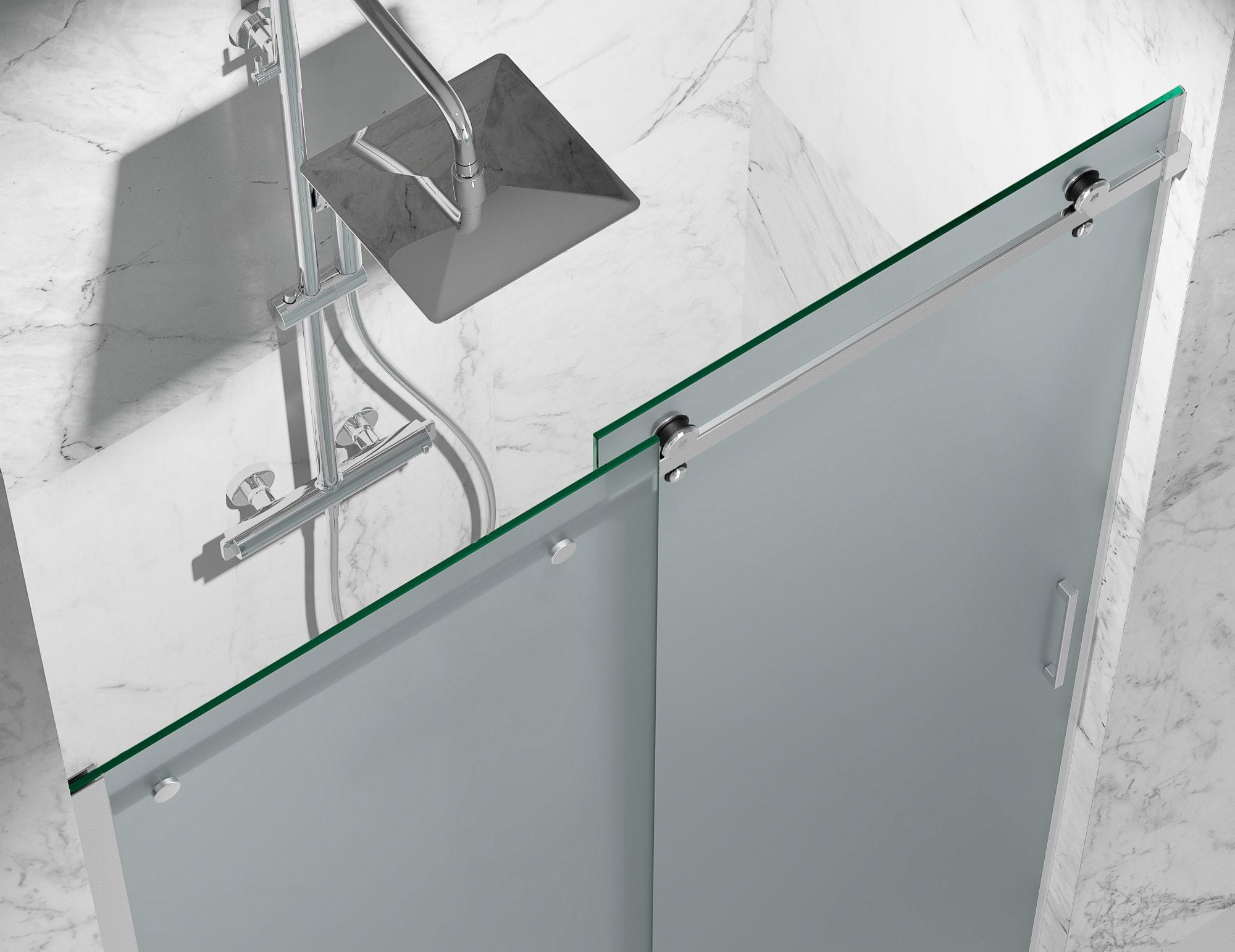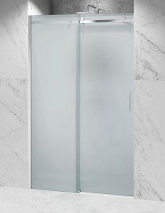 DRZWI PRYSZNICOWE PRZESUWNE, OKUCIA CHROM POŁYSK, SZKŁO MROŻONE MLECZNE