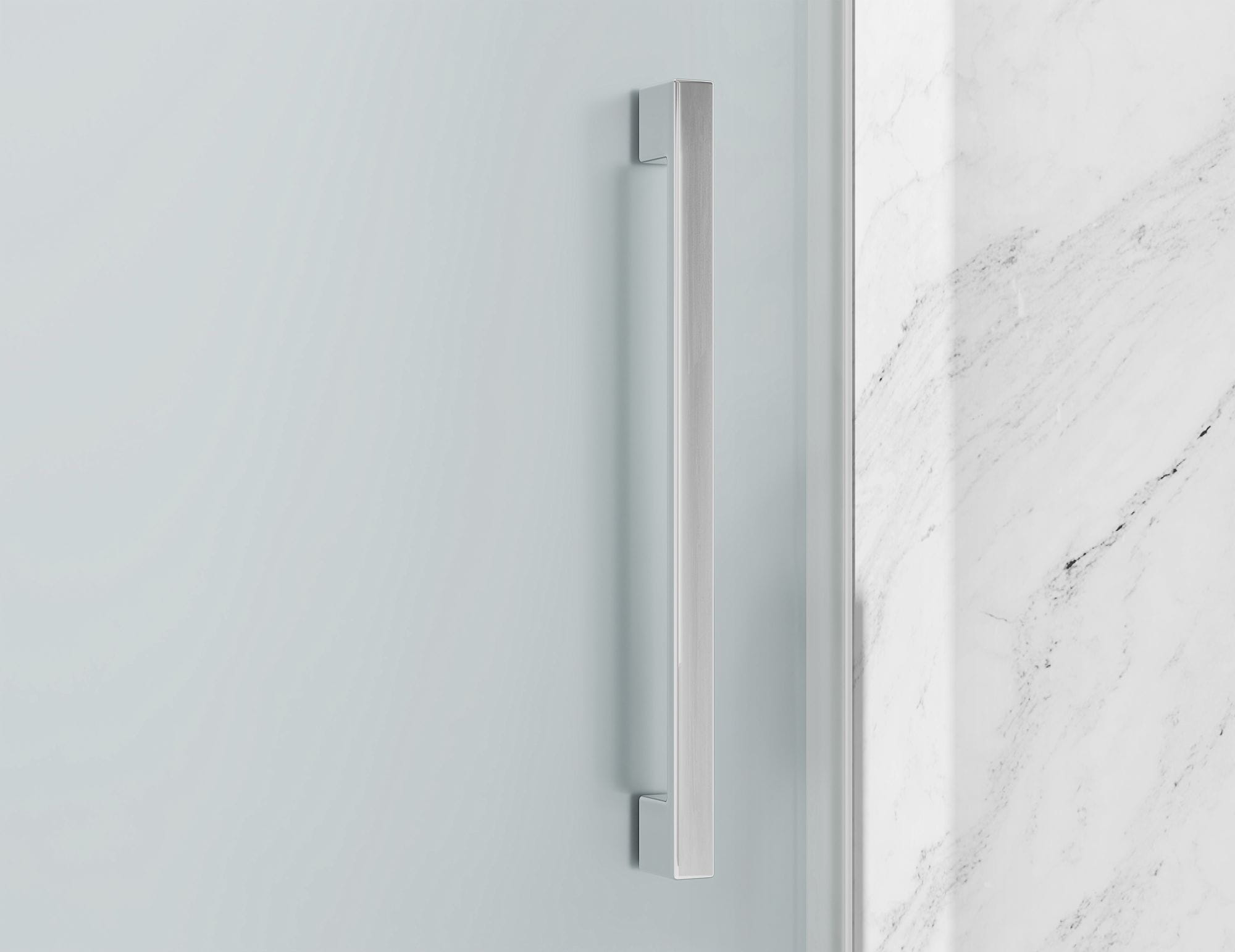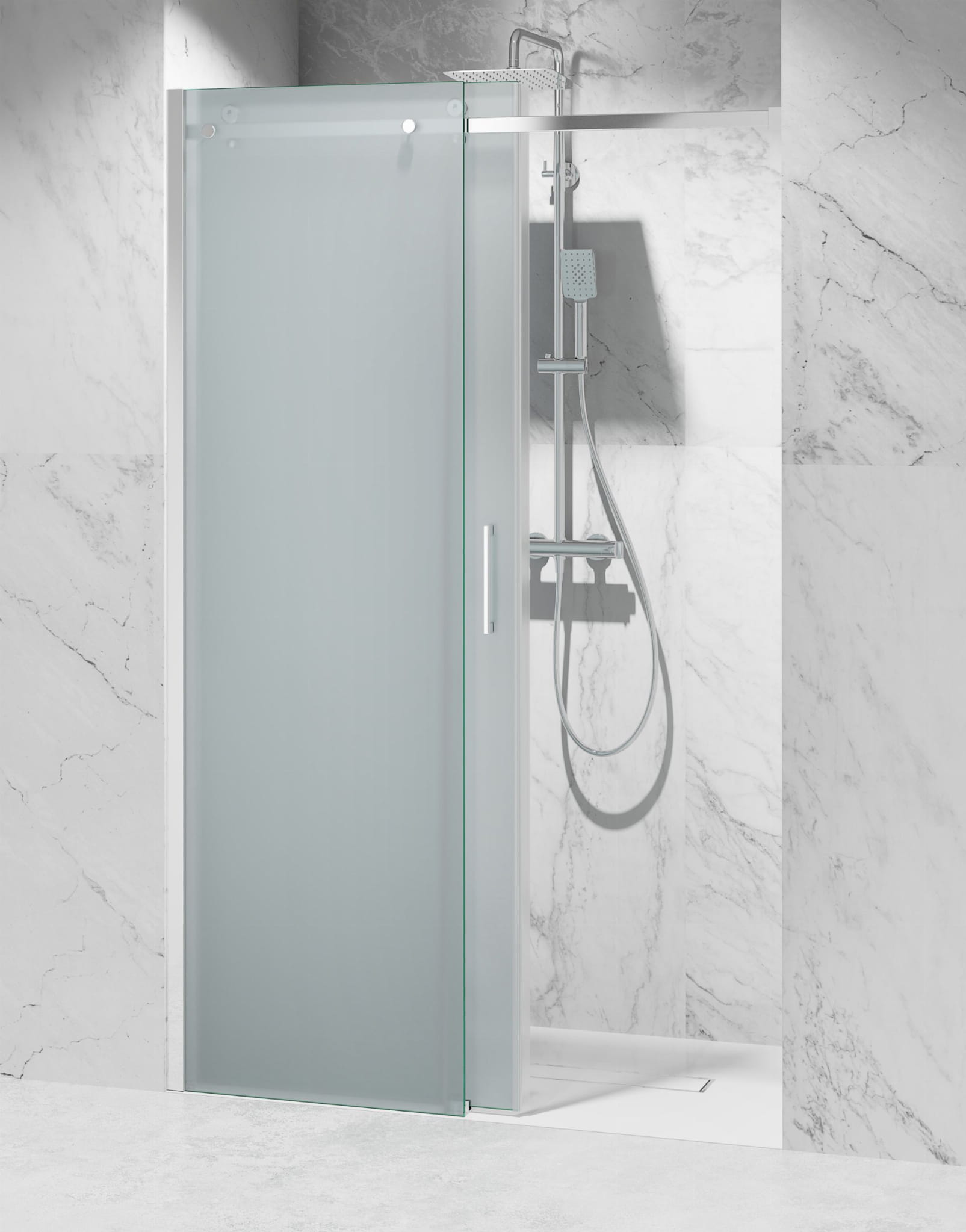 Okucia Chrom Połysk, Szkło Mrożone Mleczne, Drzwi Prysznicowe Przesuwne.