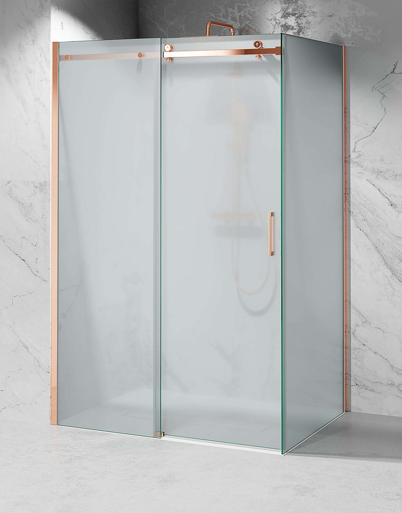 Kabina Prysznicowa Przesuwna, szkło mrożone, okucia złoty róż