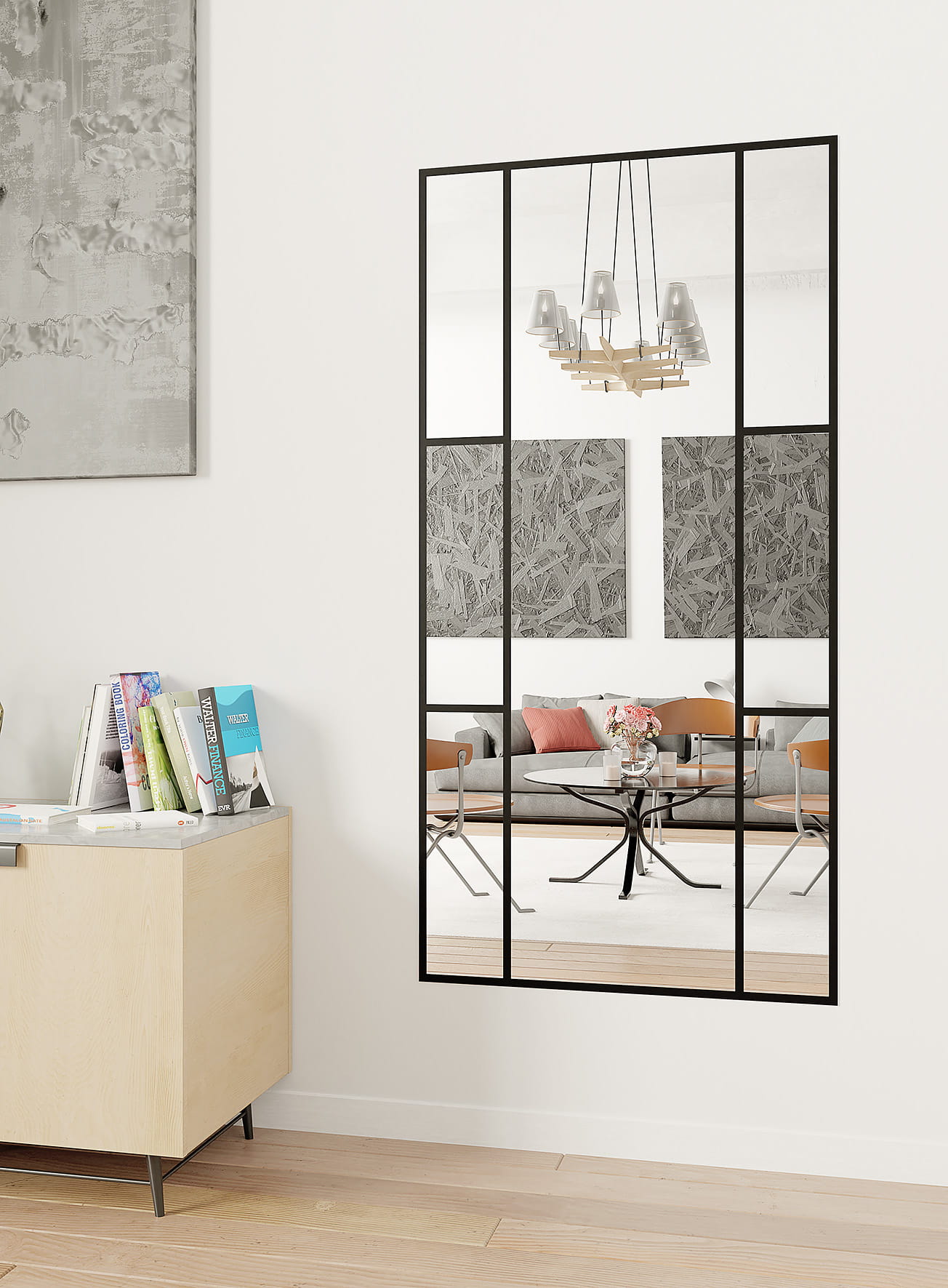 Aranżacja z użyciem dużego prostokątnego lustra typu LOFT ze szprosami Brilies to doskonały sposób na nadanie wnętrzu industrialnego charakteru oraz dodanie nowoczesnego akcentu. To lustrzane rozwiązanie, inspirowane stylem loftowym, wyróżnia się minimalistycznym designem i wyjątkową funkcjonalnością.
