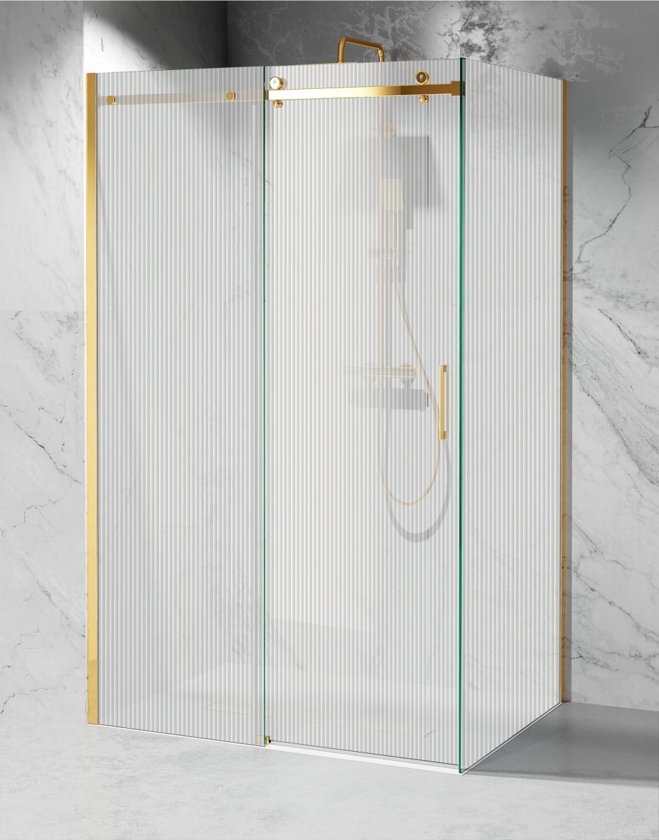 Kabina Prysznicowa Przesuwna C20, Okucia Złoty Połysk, Szkło Ryflowane 8mm
