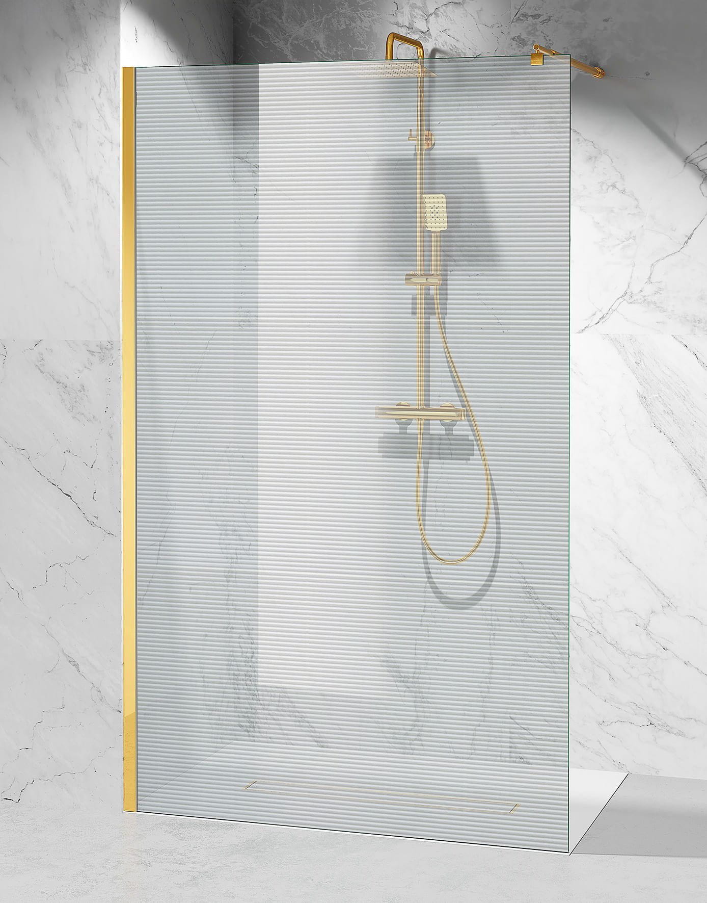 Szyba Prysznicowa Szkło Ryflowane, okucia Złoty Połysk