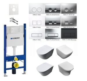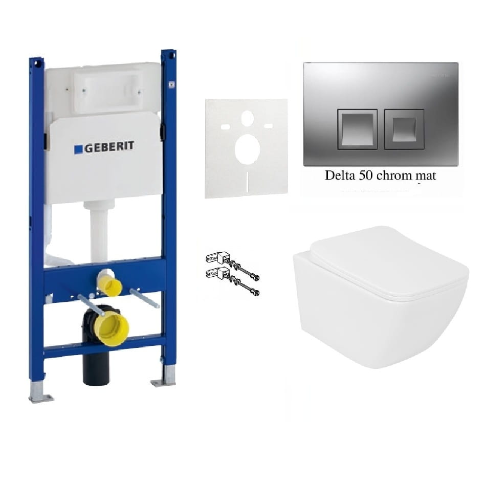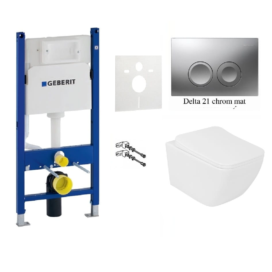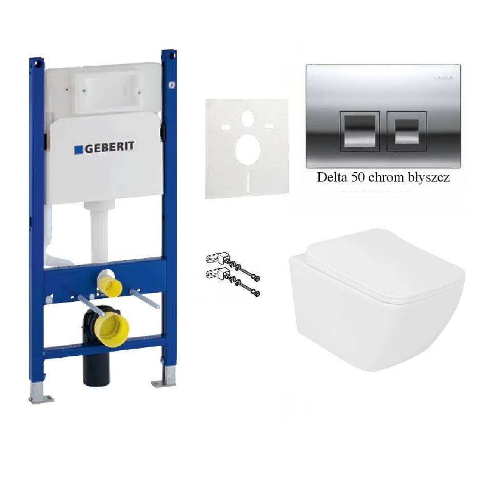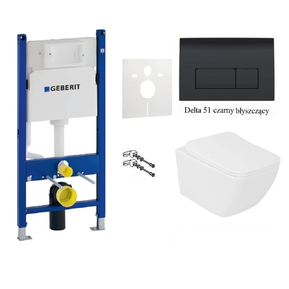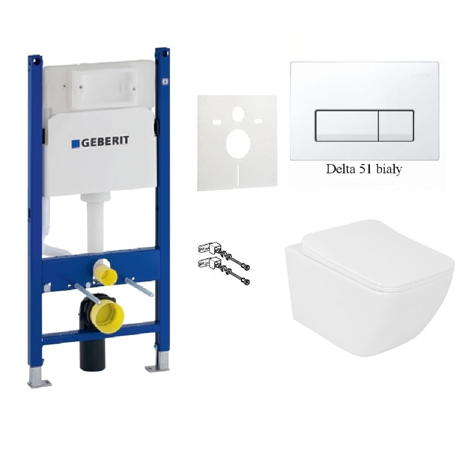 Zestaw podtynkowy: stelaż Geberit UP100, misa WC serii Tornado, przycisk, deska wolnoopadająca, mata oraz wsporniki