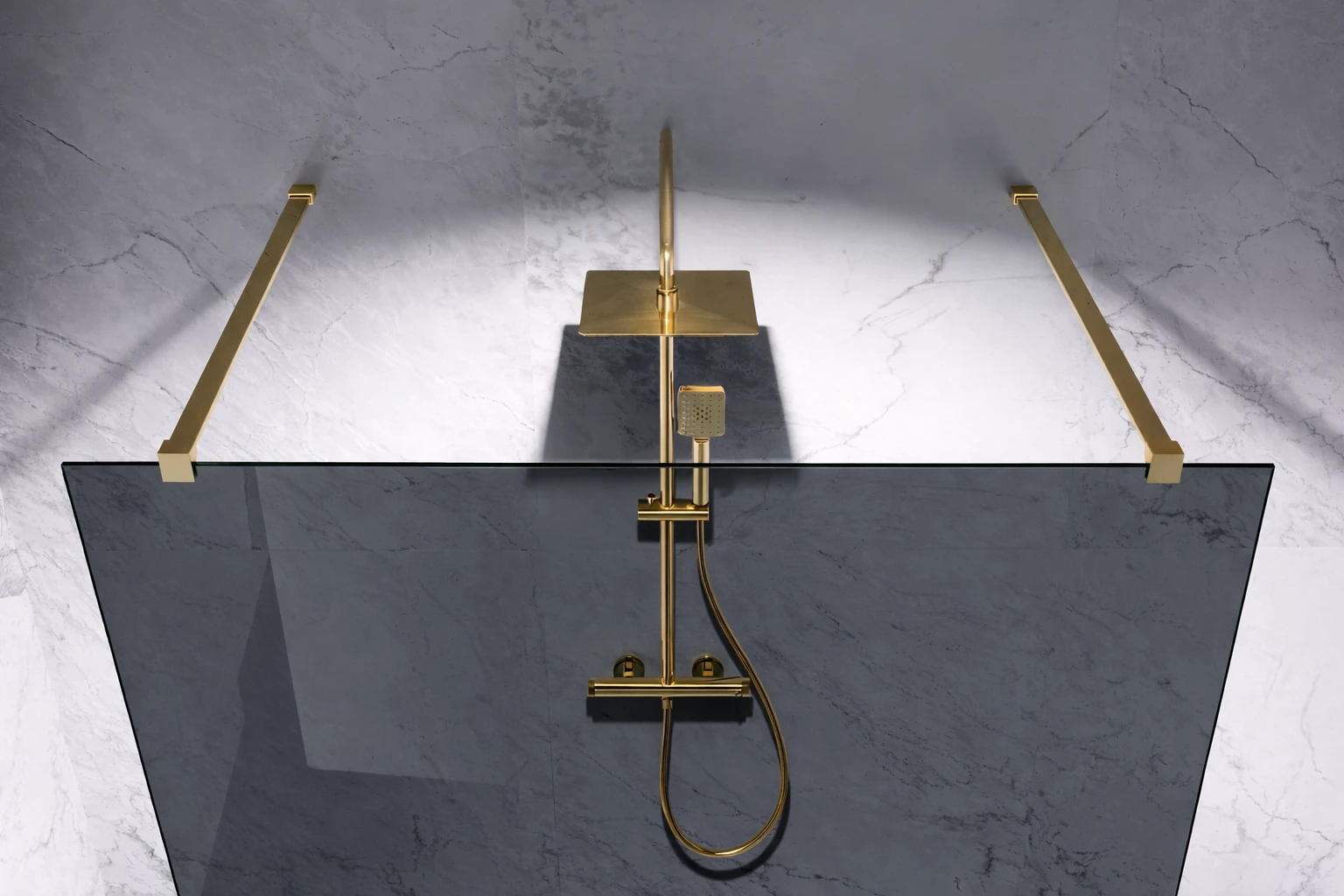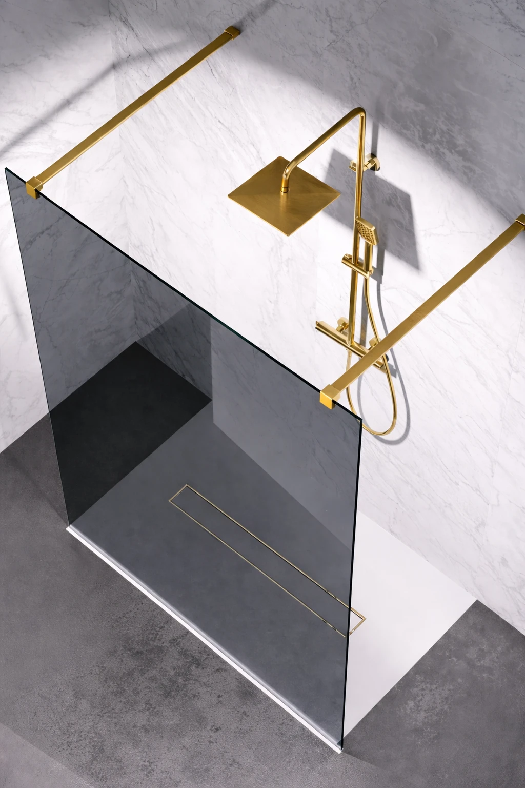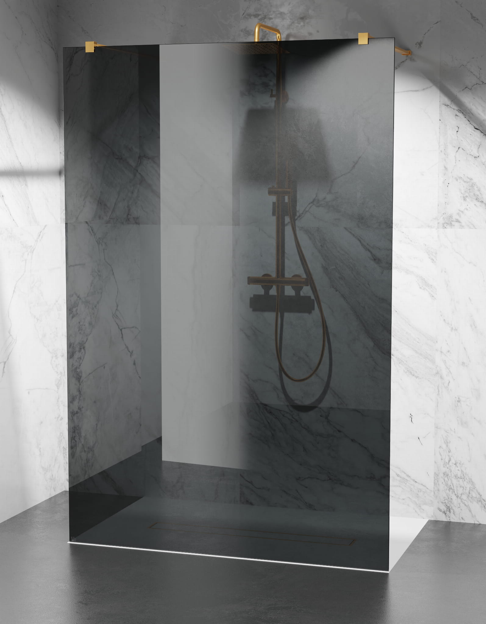 Grafitowa Szyba prysznicowa Wolnostojąca Walk-In okucia złoty mat