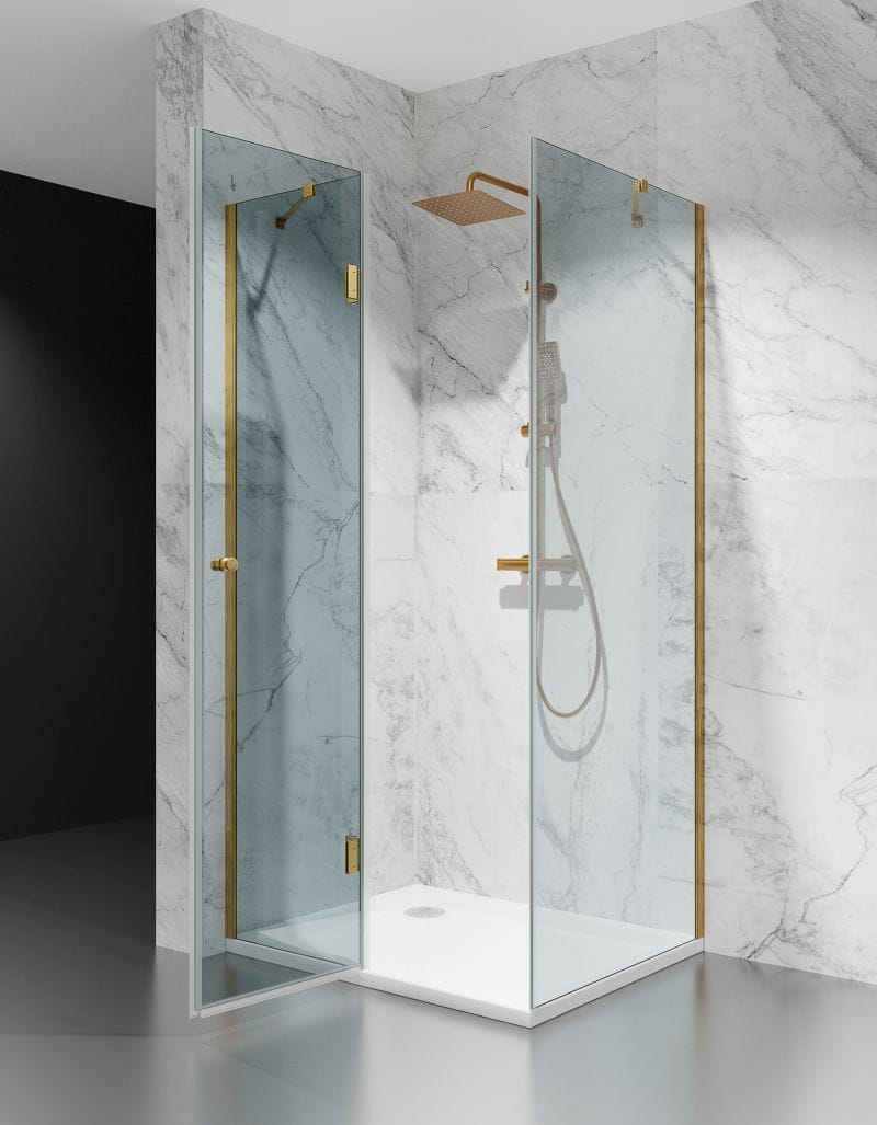 KABINA PRYSZNICOWA Z BRODZIKIEM, UCHYLNA, OKUCIA ZŁOTO SZCZOTKOWANE MODEL DV8000