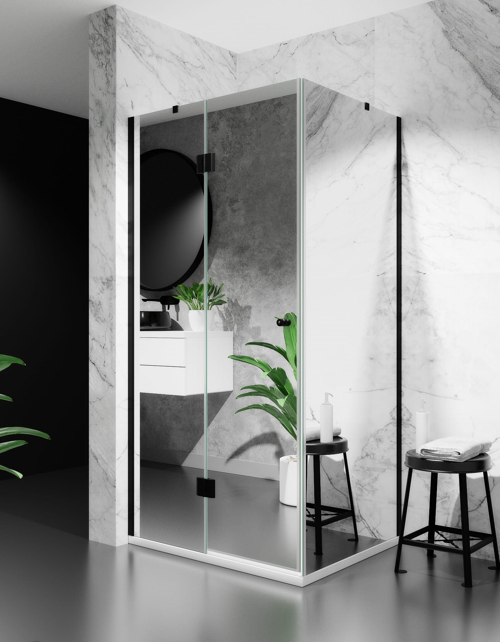 KABINA PRYSZNICOWA Z BRODZIKIEM, UCHYLNA, OKUCIA CZARNY MAT, MODEL DV8000