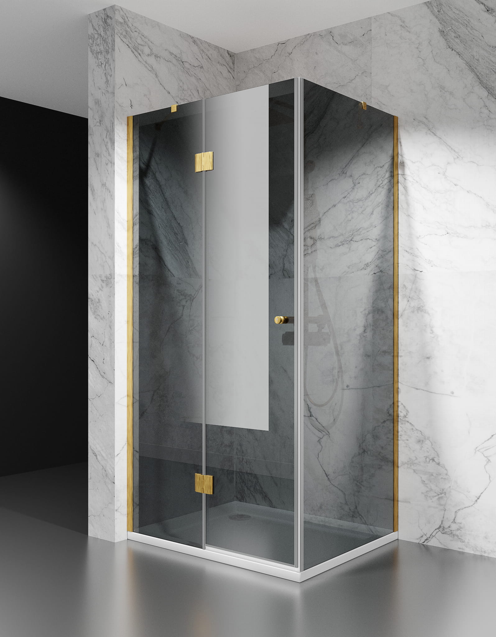 KABINA PRYSZNICOWA Z BRODZIKIEM, UCHYLNA, OKUCIA ZŁOTO SZCZOTKOWANE MODEL DV8000