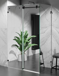 Kabina Prysznicowa Przesuwna Bezprofilowa, szkło efekt lustra, okucia czarny mat