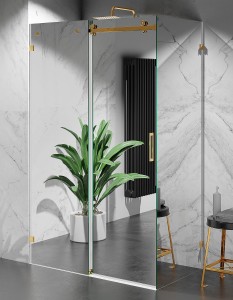 Kabina Prysznicowa Przesuwna Bezprofilowa, Efekt lustra, Złoty Połysk