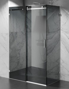 KABINA PRYSZNICOWA PRZESUWNA BEZPROFILOWA, OKUCIA CHROM POŁYSK, SZKŁO GRAFITOWE