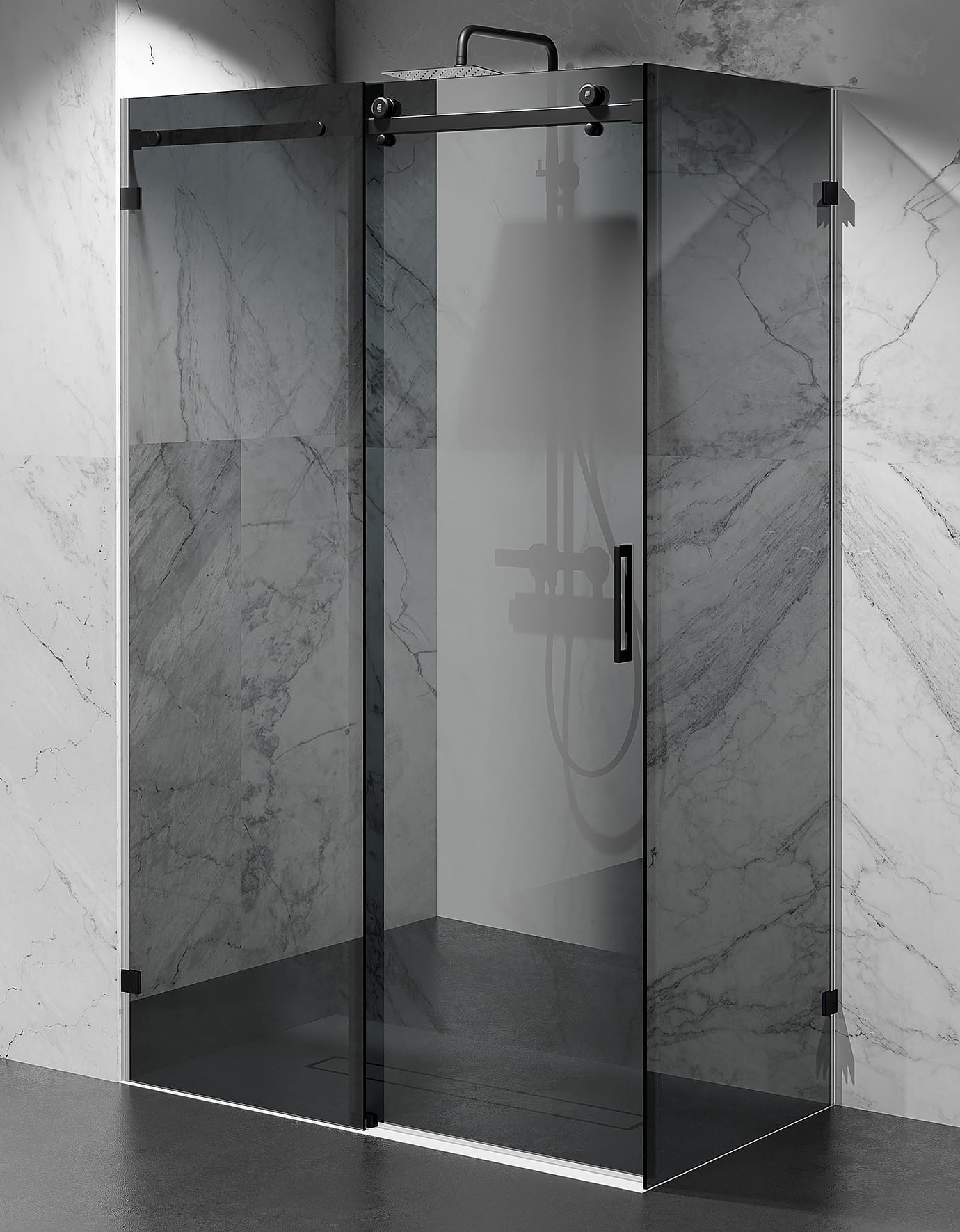 Kabina Prysznicowa Przesuwna Bezprofilowa, szkło grafitowe, okucia czarny mat