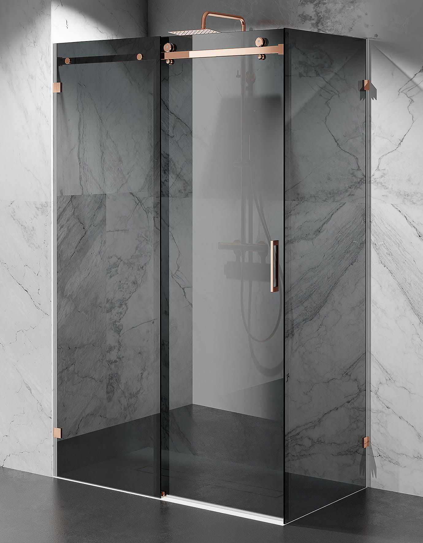 Kabina Prysznicowa Przesuwna Bezprofilowa, szkło grafitowe, okucia złoty róż