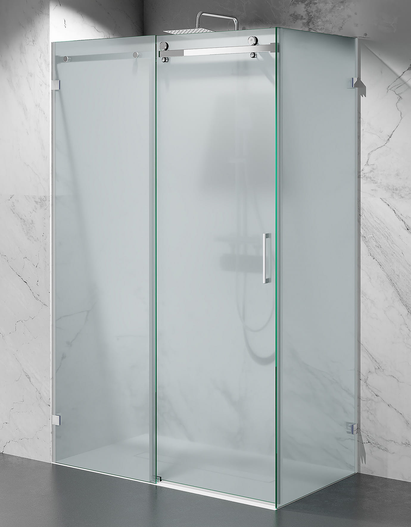 Kabina Prysznicowa Przesuwna Bezprofilowa, szkło mrożone, okucia chrom szczotkowany