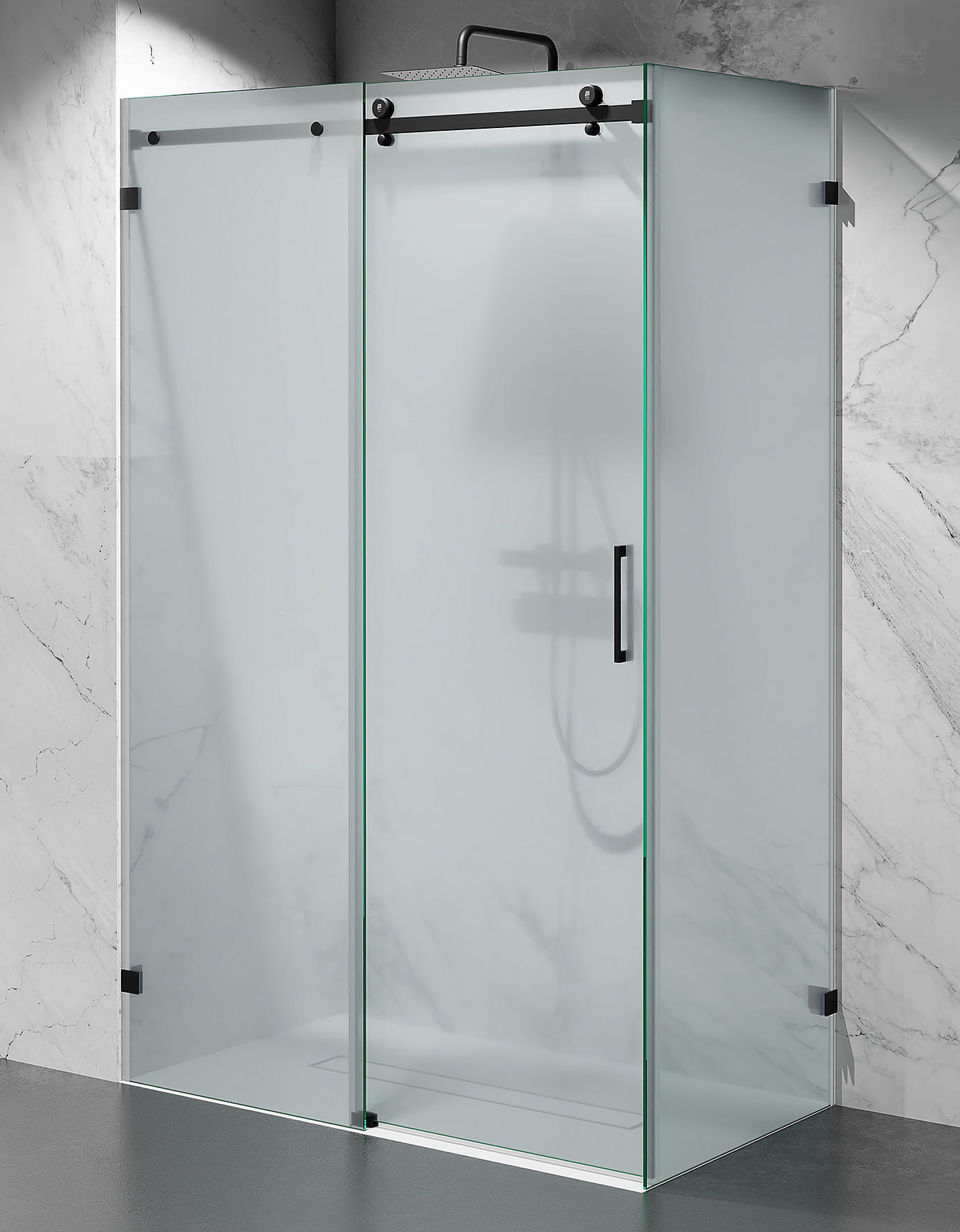 Kabina Prysznicowa Przesuwna Bezprofilowa, szkło mrożone, okucia czarny mat