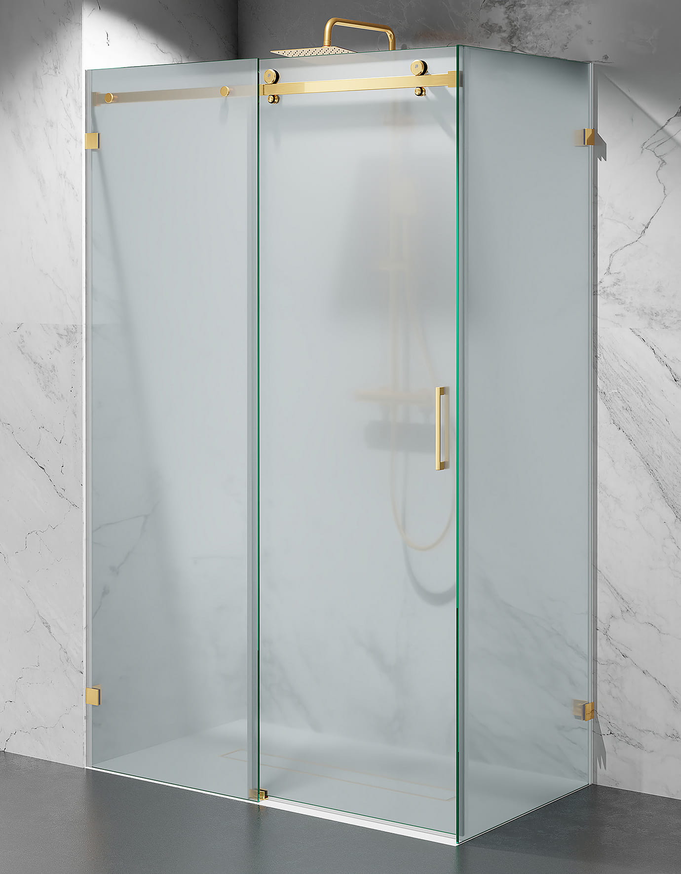 Kabina Prysznicowa Przesuwna Bezprofilowa, szkło mrożone, okucia złoty mat
