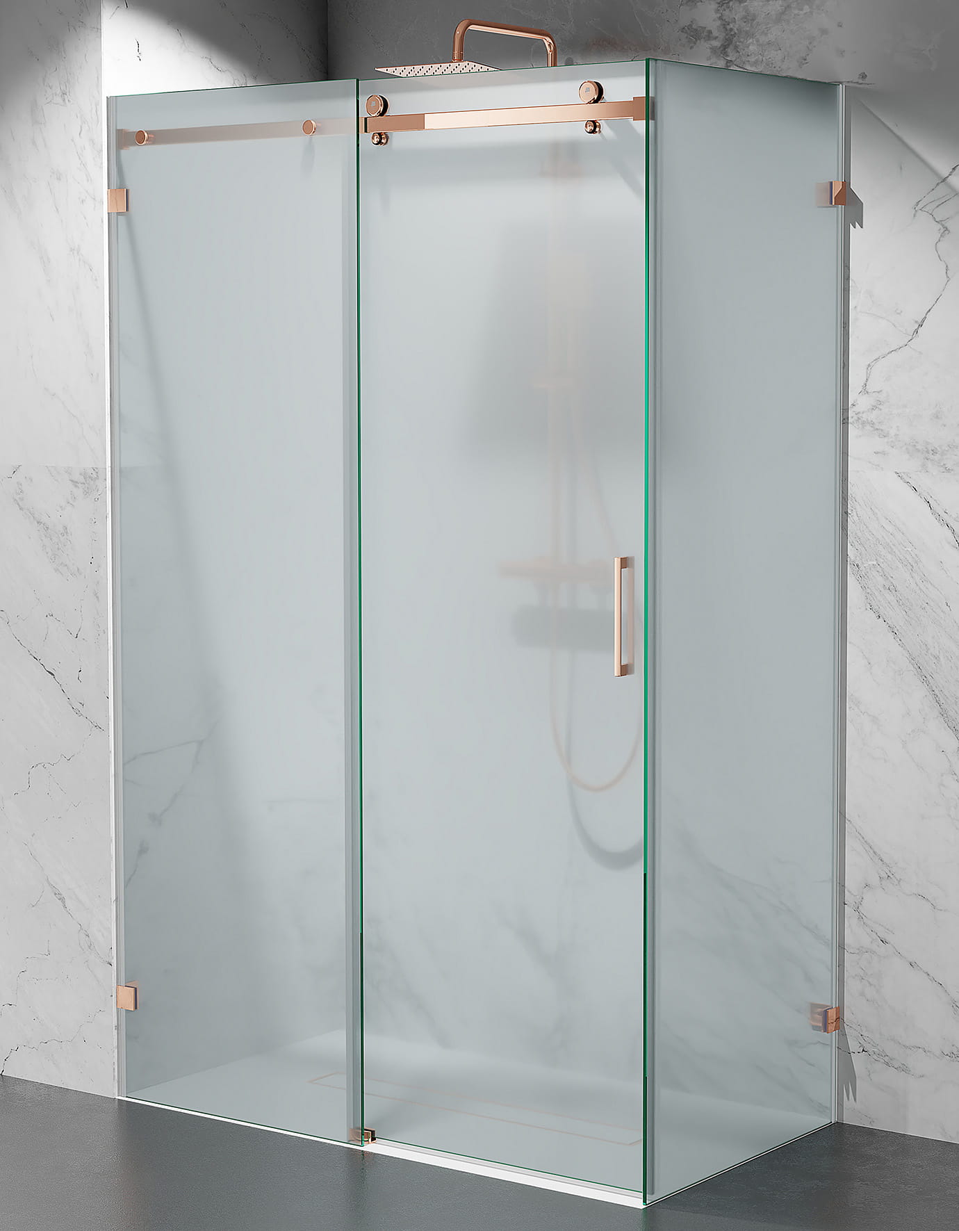 Kabina Prysznicowa Przesuwna Bezprofilowa, szkło mrożone, okucia złoty róż
