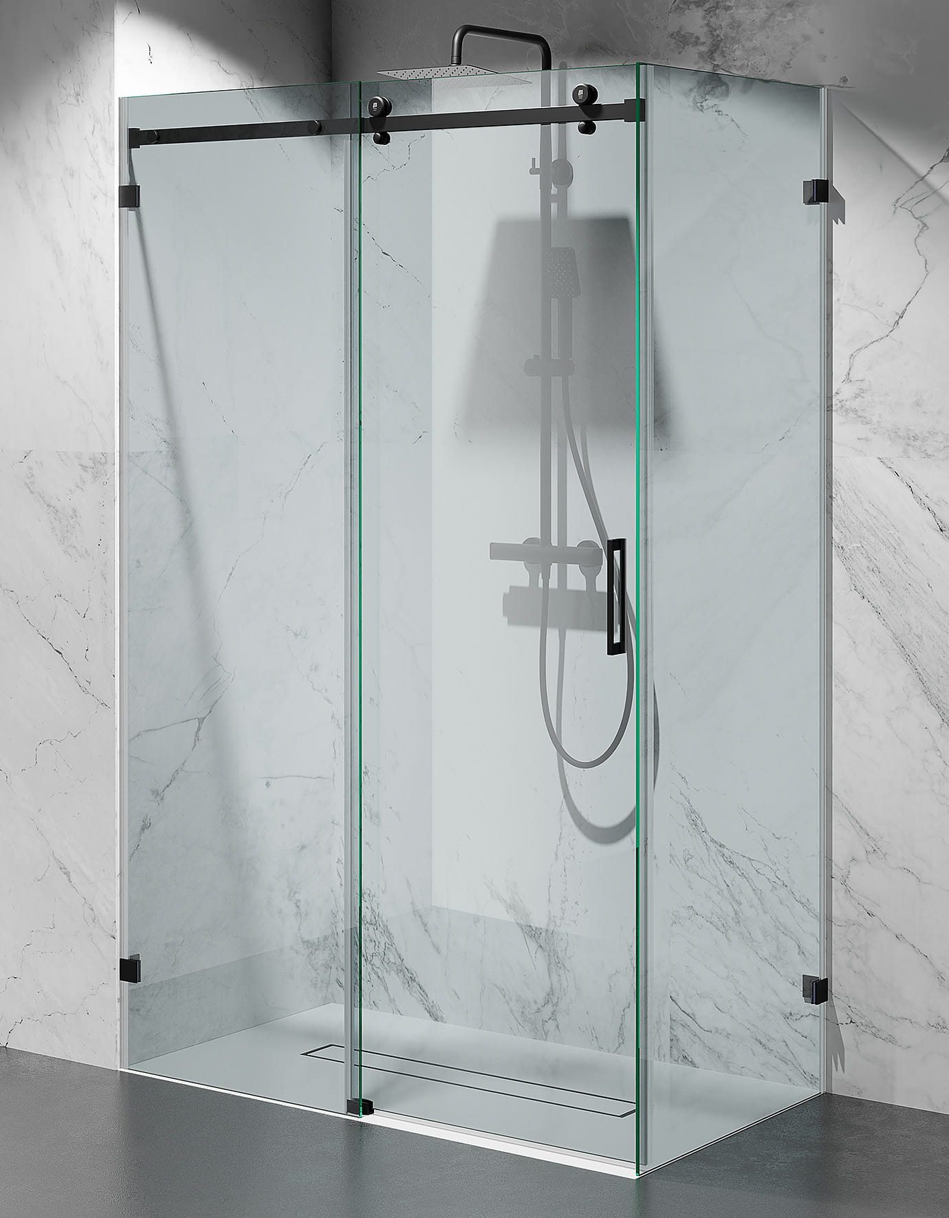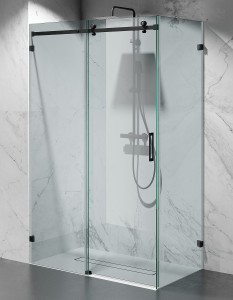 Kabina Prysznicowa Przesuwna Bezprofilowa, szkło transparentne, okucia czarny mat