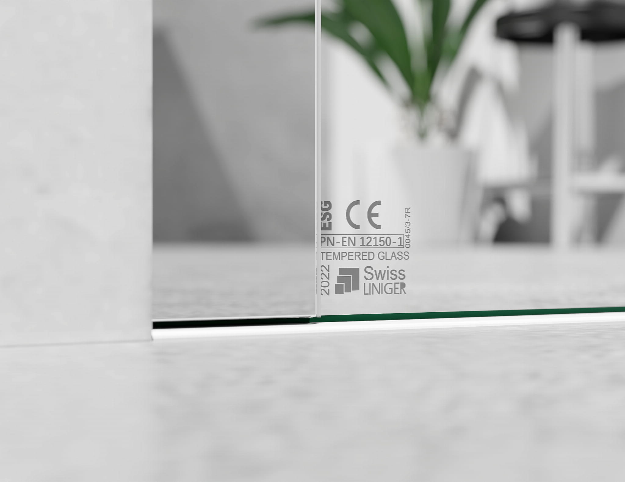 Kabina prysznicowa przesuwna wykonana jest ze szkła wykonanego w technologii podwójnego hartu. Jest to specjalny proces, mający na celu uzyskanie maksymalnej odporności szkła na mechaniczne uszkodzenia. Kabina prysznicowa przesuwna wykonana z takiego szkła daje maksymalne bezpieczeństwo swoim użytkownikom. Nasze kabiny prysznicowe produkujemy ze szkła o grubości 8mm. Jest to polskie szkło pochodzące z huty szkła z Sandomierza. Nasze kabiny przechodzą wyjątkowo rygorystyczne testy jakościowe, które zostały wdrożone pod okiem marki Swiss-Liniger. Nasze kabiny nie są pofalowane, szkło jest diamentowo czyste bez przebarwień i zanieczyszczeń. Kupując u nas, nabywasz produkt premium od polskiego producenta kabin Glassberg.