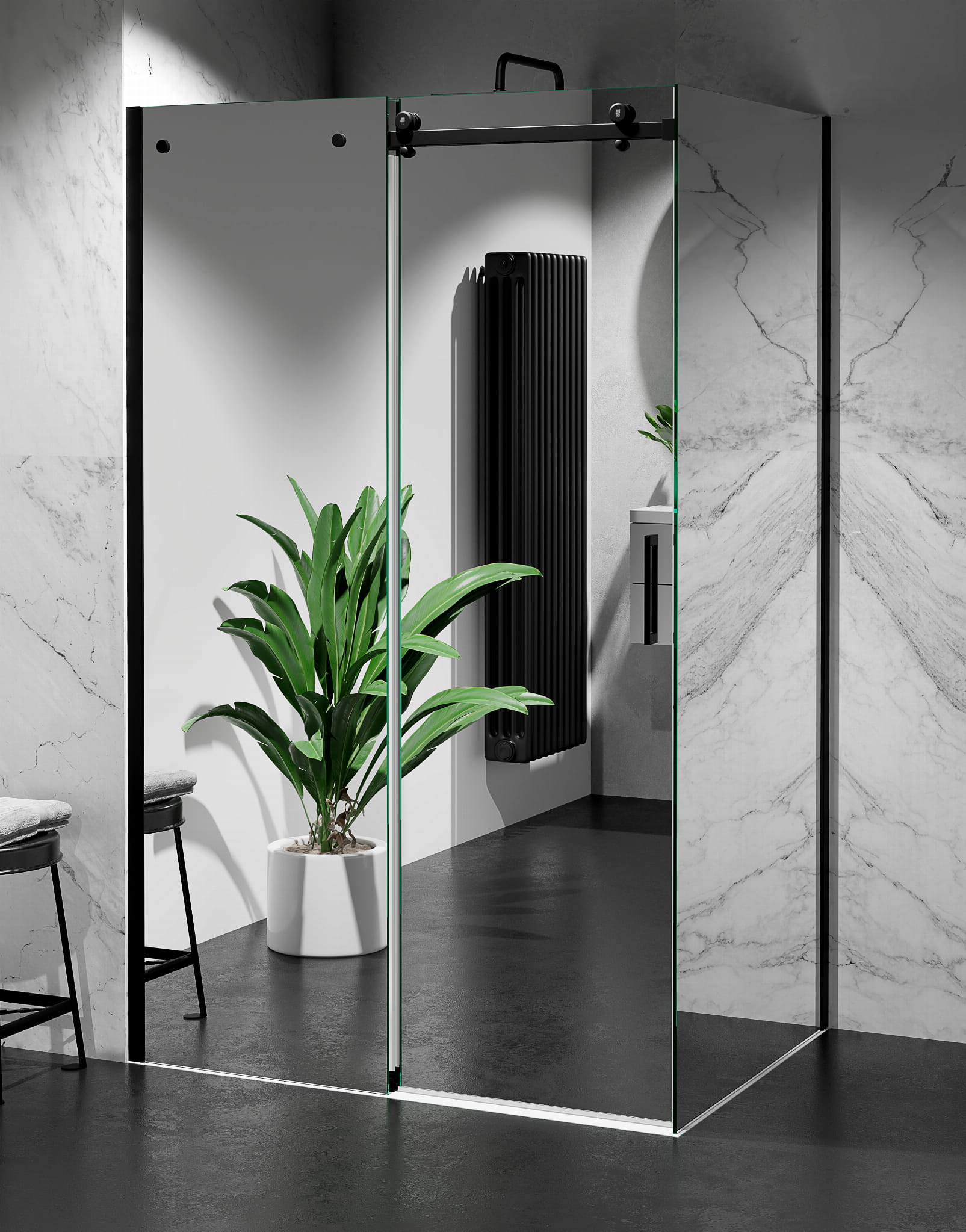 Kabina Prysznicowa Przesuwna, okucia Czarny Mat