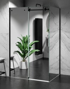 Kabina Prysznicowa Przesuwna Szkło EFEKT LUSTRA, okucia Czarny Mat