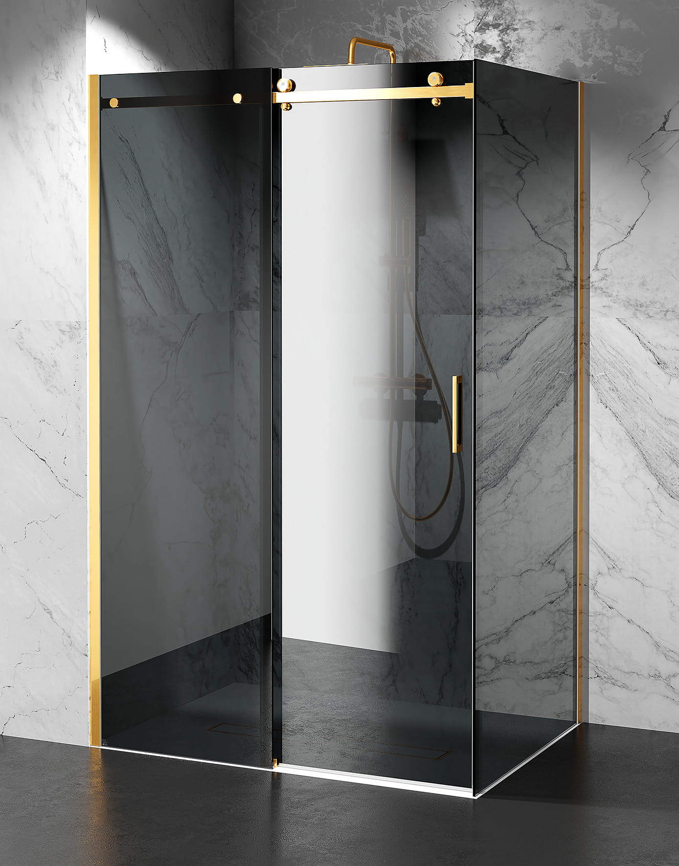 Kabina Prysznicowa Przesuwna Szkło Grafitowe, okucia Złoty Połysk
