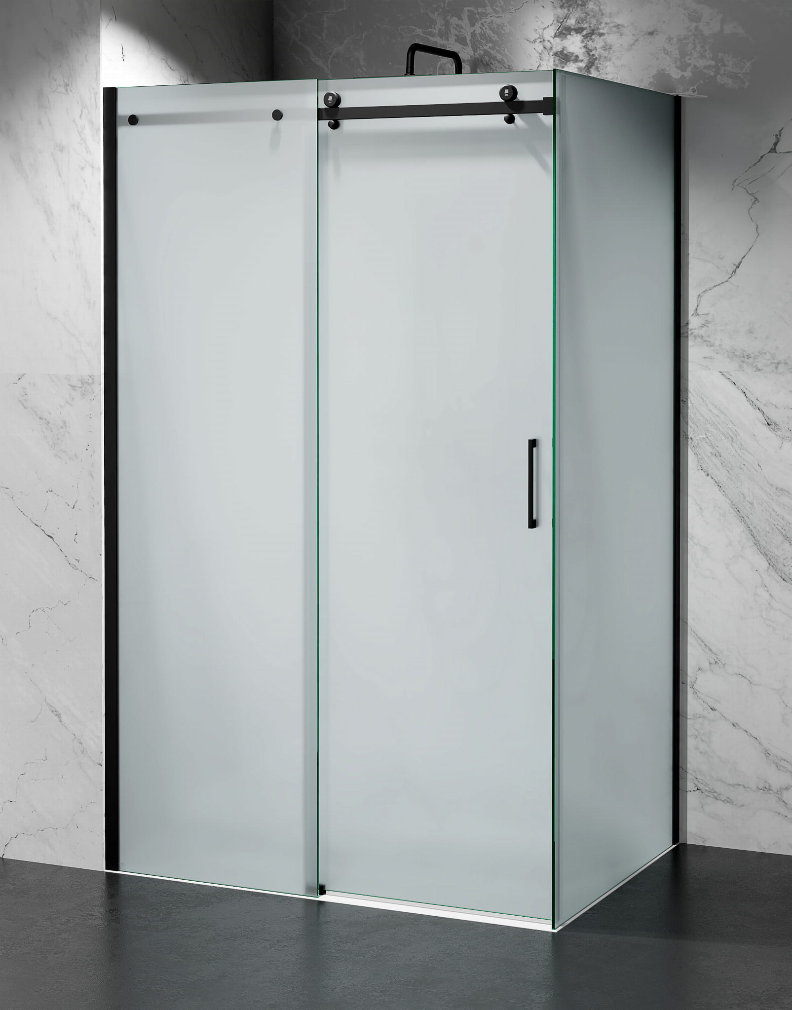 Kabina Prysznicowa Przesuwna Szkło Mrożone Mleczne , okucia Czarny Mat
