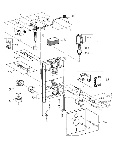 ZESTAW (Ceramika do wyboru): Stelaż Niski Grohe + wsporniki dystansowe + 2 Maty + Miska WC + Deska wolno-opadająca + bidet + stelaż do bidetu.