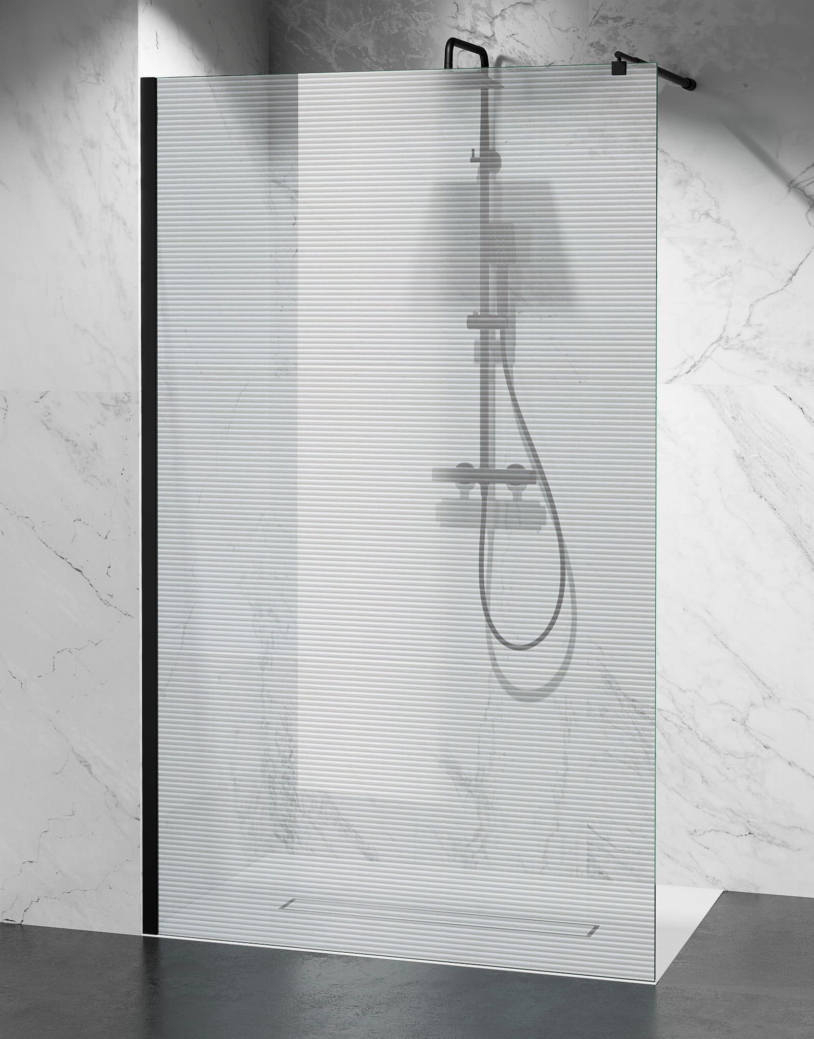 Szyba prysznicowa Walk-In, szkło ryflowane, kolor okuć: czarny mat