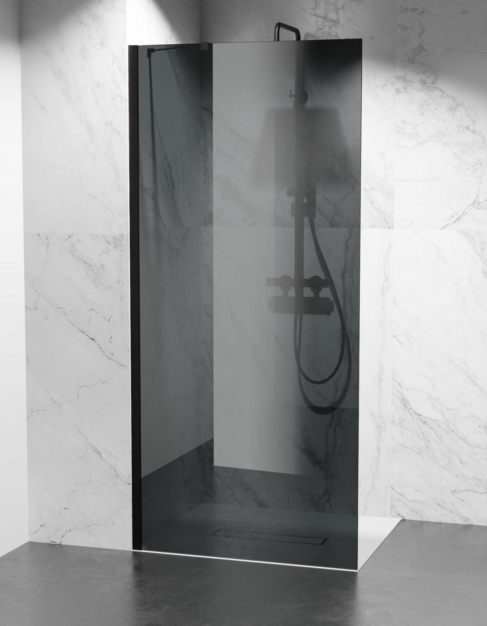 Szyba Prysznicowa Walk-in Wspornik Boczny, Okucia Czarny Mat, Szkło Grafit