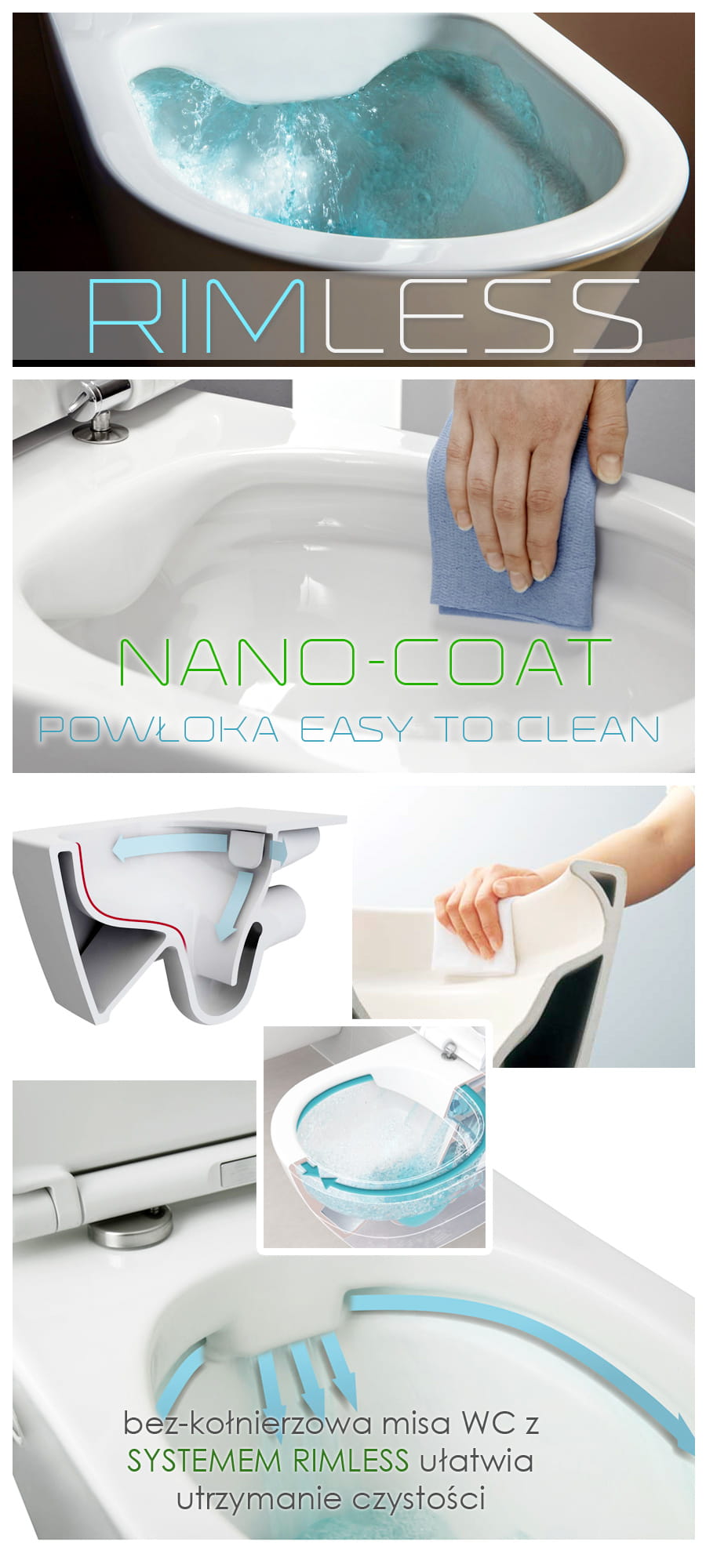- Dwie spłuczki: 3L i 6L zapewniające oszczędność wody